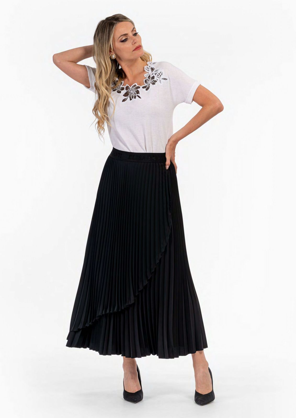 Блузка из вискозы-холодок украшена россыпью страз по передней части