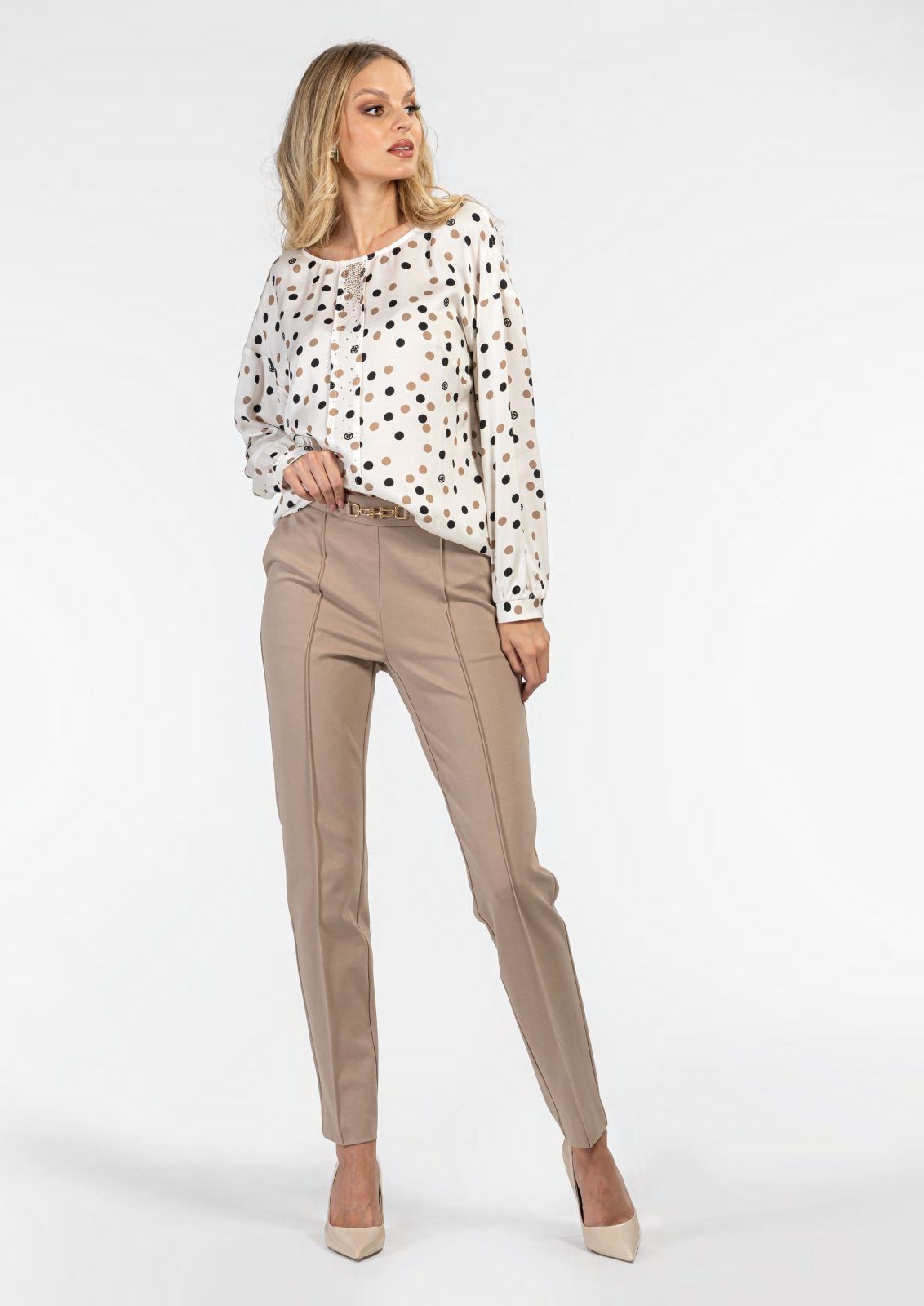 Элегантные эластичные брюки из ткани punto milano с высокой талией и фактурной прострочкой 2P081
