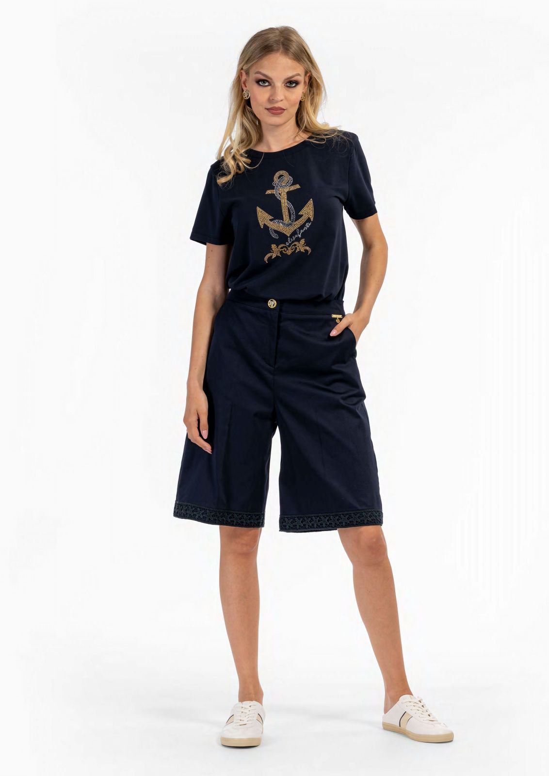 Футболка из натурального хлопка с акцентным стилизованным принтом якорь из страз Swarovski