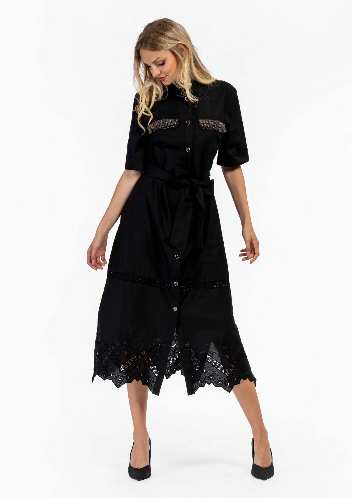 Роскошное платье из натурального хлопка с традиционным итальянским шитьем и россыпью страз по горловине