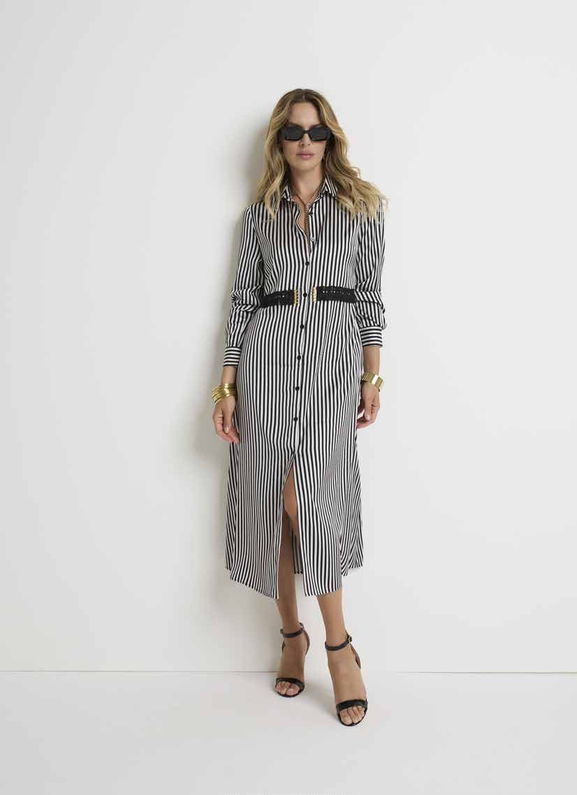 Платье в полоску из шелковистой вискозы и эластана с декоративным по линии талии, длина 130 см