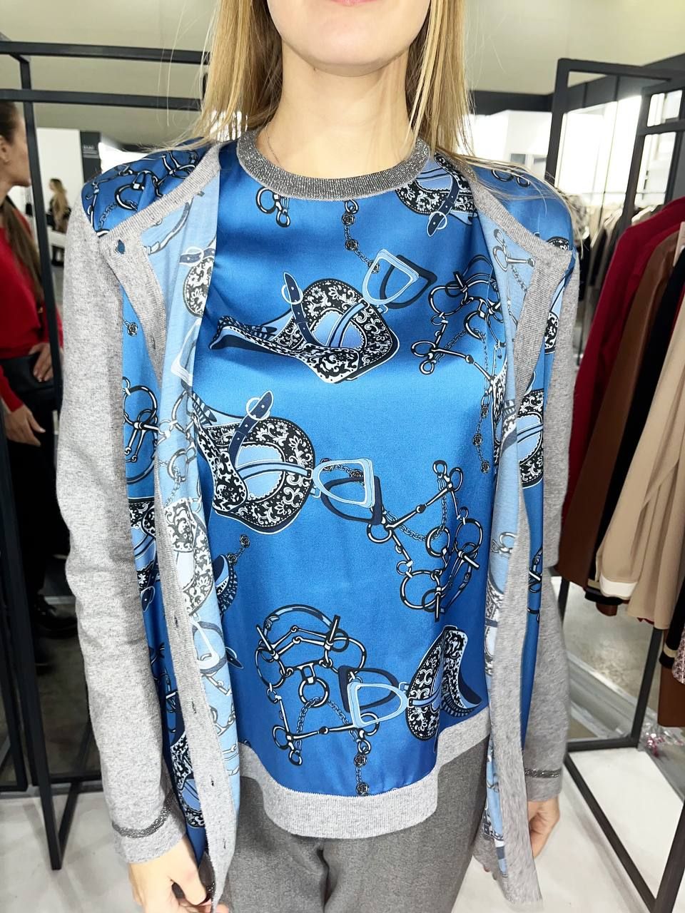 Кардиган из натурального шелка по передней части и трикотажа по рукавам и спинке